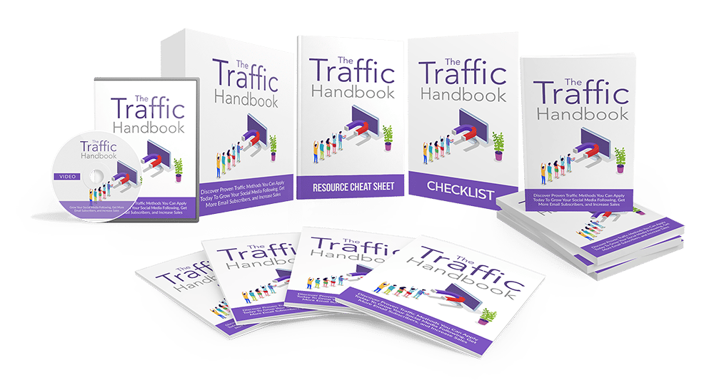 You'll be recieving the Ebook, Audiobook, and Video Course versions of the Traffic Handbook, along with the Traffic Handbook Checklist, Resource Cheat Sheet, and Mind Map. You'll also be getting a guide that provides 10 ways to DOUBLE your traffic from social media.